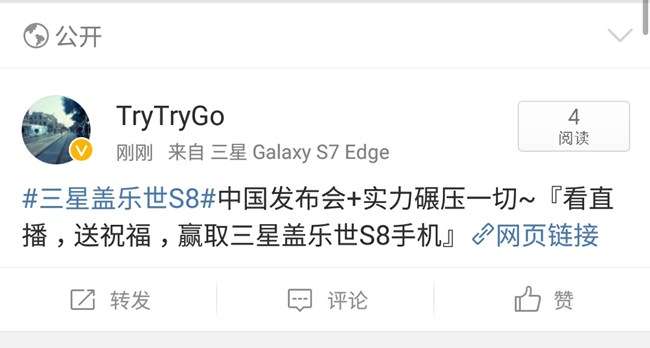 【獎品已郵寄】看直播送祝福,贏取三星蓋樂世S8手機