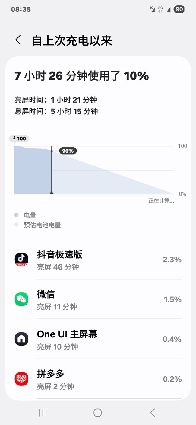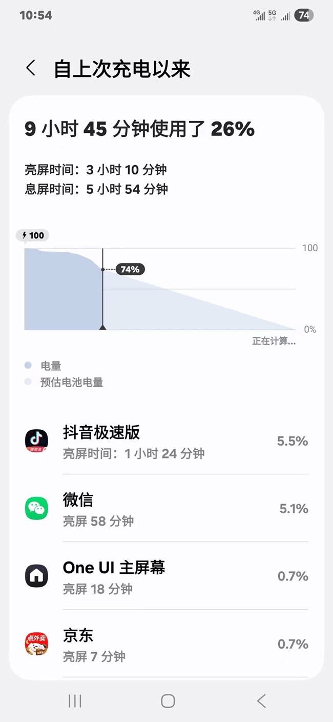 這是我現(xiàn)在剛剛截屏的10:54分的電池使用,