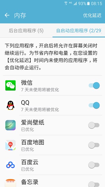 嗯 有點強迫癥 自己不知道怎么設置的時候一定要知道 在智能管理器里面點內存 然后自己設定 后臺運行程序