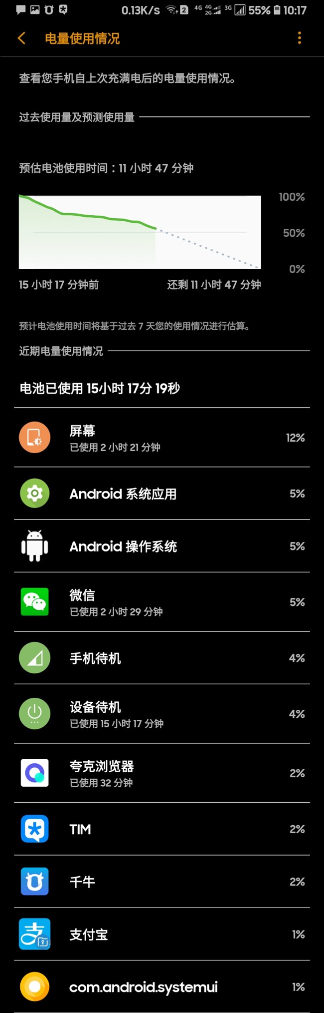 8.0beta4 省電到我自己到不敢相信。。我現(xiàn)在亮屏2小時21分鐘,使用時間15小時17分鐘,預計還能使用時間11小時47分鐘。