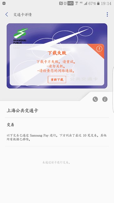 samsung pay購(gòu)買交通卡支付成功后一直下載失敗!求助!