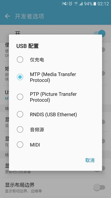 我開發(fā)者里面有個 usb配置,我點的MTP,不行