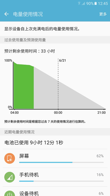24小時過去了,中度使用,電池使用情況依然良好,見圖,強(qiáng)烈推薦摒棄諸如360、騰訊管家等第三方管理軟件,不說它們是病毒,至少與三星官方智能管理軟件是有沖突的。