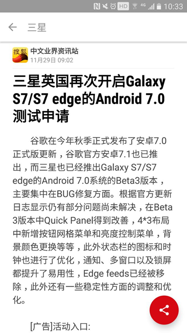 【已結(jié)束】S7/S7edge用戶搶先體驗(yàn)安卓7.0的Beta體驗(yàn)活動(dòng)