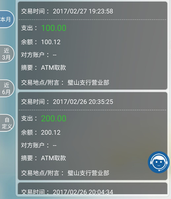 2月27日通過三桑呸在建行柜員機(jī)取款100¥,一切正常!