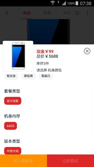 截止到現(xiàn)在天貓三星旗艦店還是顯示64G。