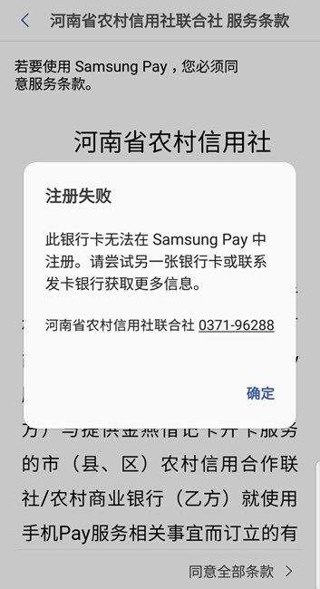 希望解決三星PAY無(wú)法添加河南農(nóng)商行的問(wèn)題