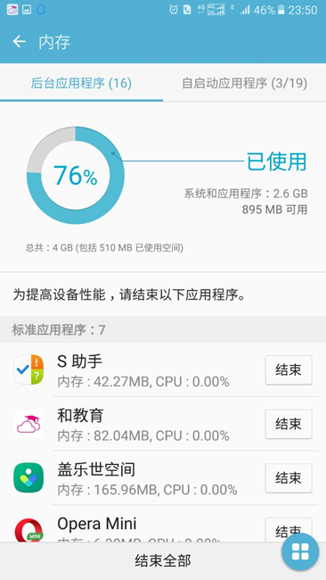 不清理是不可能滴,每天手機(jī)都要處理大量圖片信息,9:00上班到中午吃飯時(shí)間久已經(jīng)占用運(yùn)行內(nèi)存1GB,而A9+ 標(biāo)稱4GB運(yùn)行內(nèi)存,實(shí)際可用只有2.2GB,如果不清理緩存沒到下班就可能占滿空間了。