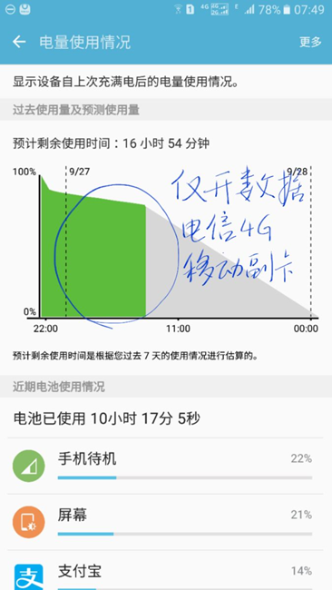 測試了,只保留4G通話功能,關(guān)閉WiFi、數(shù)據(jù)、GPS、NFC,一個小時剛好4 %!