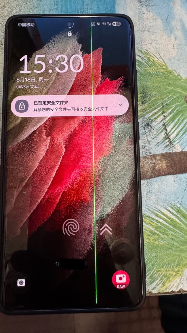 我的21ultra也是莫名的突然有一條綠線在那里,你的最后怎么辦,告知一下,沒磕沒碰突然這樣