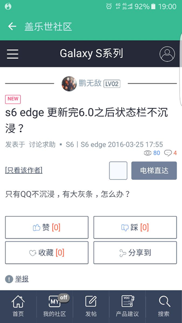 s6 edge 更新完6.0之后狀態(tài)欄不沉浸?