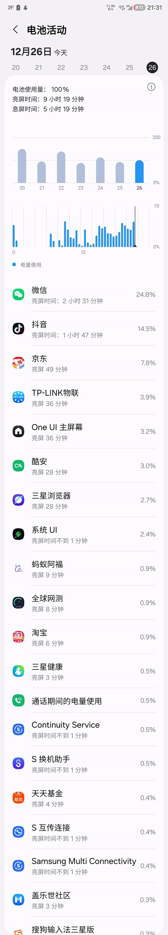 更新完最新的月度包,好像省電了