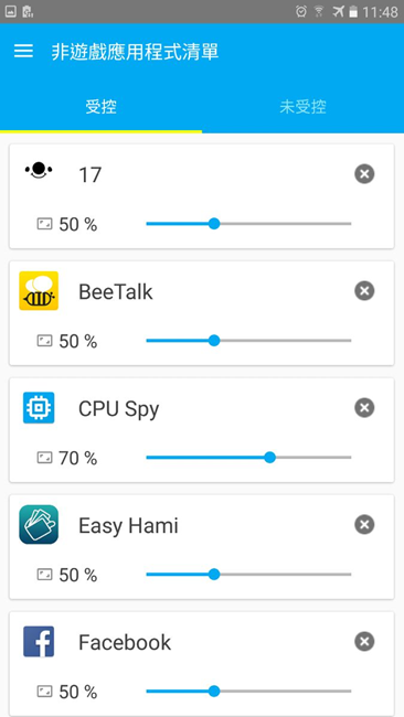 我的game tuner app調(diào)整區(qū)域如下圖。一次看三個(gè)直播APP都不會(huì)發(fā)燙喔