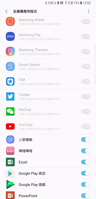 設(shè)置--顯示--全屏幕應(yīng)用程序,找到微信,點(diǎn)擊按鈕