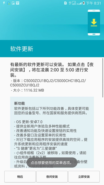 c5000以更新安卓7.0