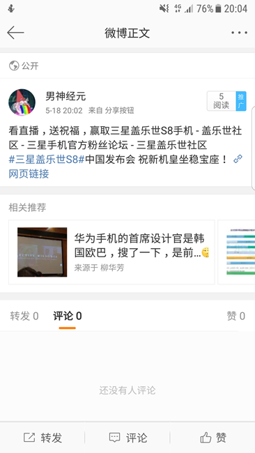【獎(jiǎng)品已郵寄】看直播送祝福,贏取三星蓋樂(lè)世S8手機(jī)