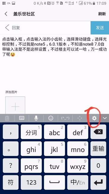 點(diǎn)擊輸入框,點(diǎn)擊輸入法的小齒輪,選擇滑動(dòng)鍵盤,選擇光標(biāo)控制,不過我是note5,6.0.1版本,不知道note8 7.0自帶輸入法是不是這樣設(shè)置,不過樓主可以試一哈,萬一成功了呢??