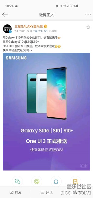 【公告】Galaxy S10/Note10系列One UI 3內(nèi)測(cè)體驗(yàn)即將開始
