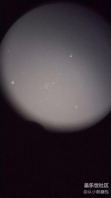 手持手機(jī)通過*望遠(yuǎn)鏡曝光10秒拍的。