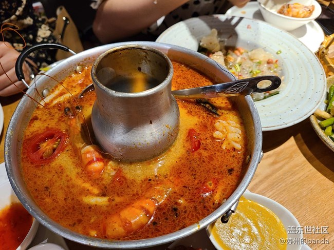 最后是經(jīng)典的泰式冬陰功湯,酸辣味都比較弱,可能是為了適應(yīng)中國人的口味,不過這樣空口喝也沒問題。