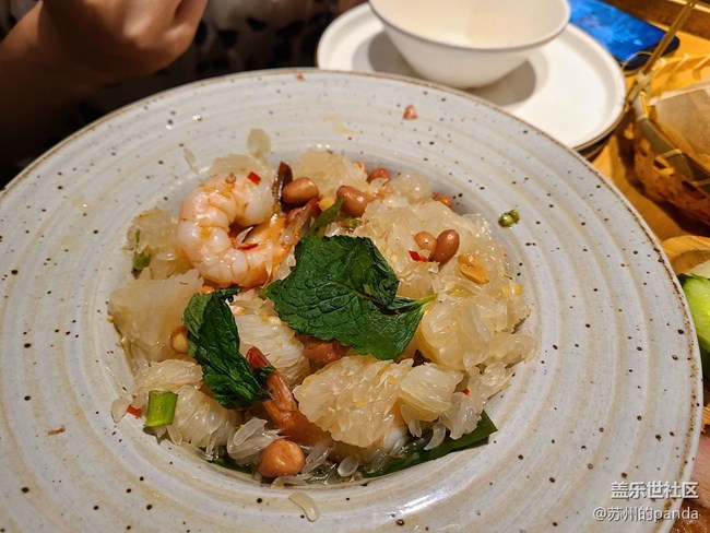 泰式柚子大蝦,清甜的口味和蝦肉Q彈的口感相得益彰,柚子肉也是格外香甜,不得不說泰國人真的太會做菜了!