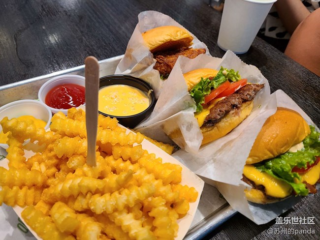 長假期間也難得有空去大魔都感受一下節(jié)日的氣氛。中午早已饑腸轆轆的我們選擇了一家很出名的西式快餐店【shake shack】,他們家最出名的就是牛肉和雞肉的漢堡。