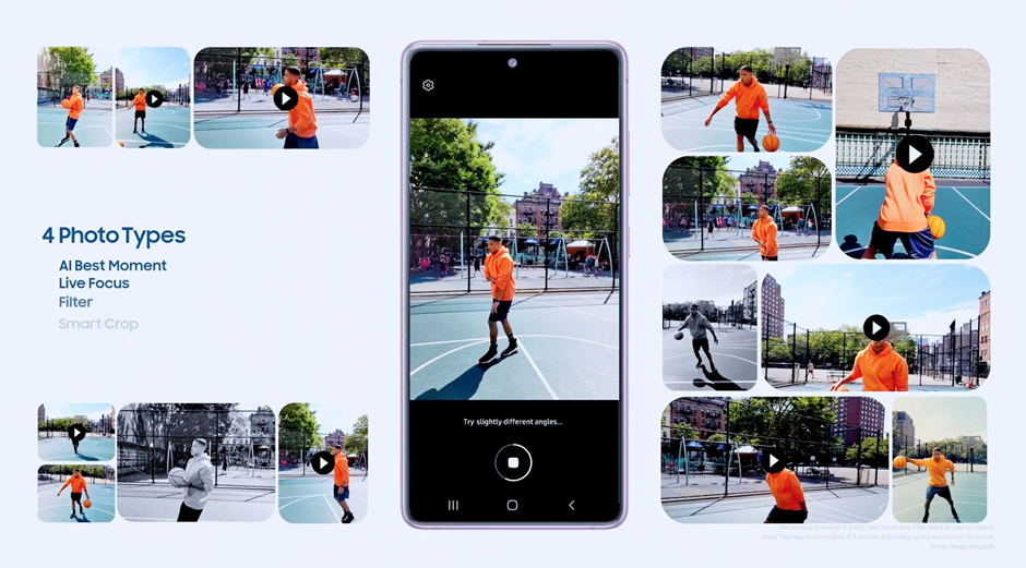 三星Galaxy S20 FE 5G支持AI一鍵多拍功能,最多可得到14種不同類型的照片和視頻。