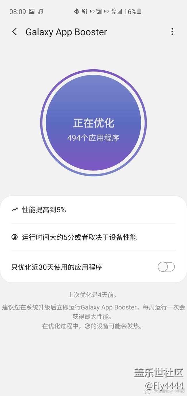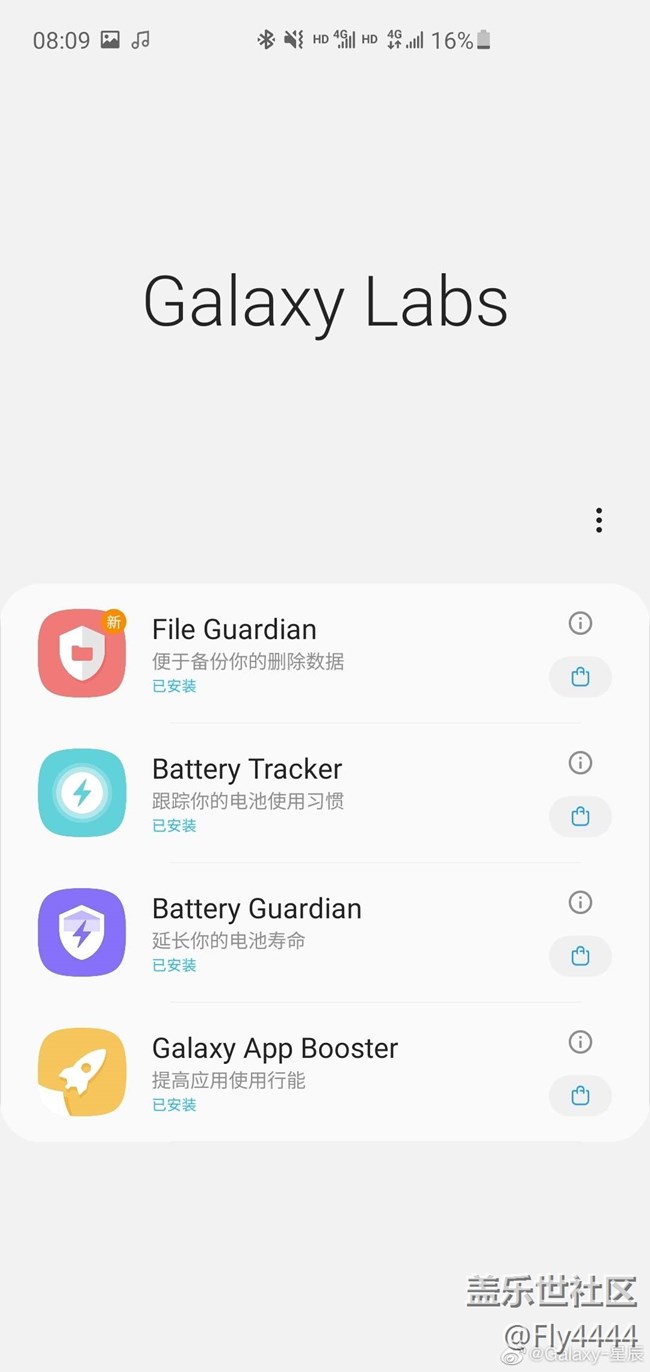 Galaxy Labs:我認(rèn)為是一款智能管理器的補(bǔ)充插件,感覺(jué)三星應(yīng)該將其整合進(jìn)智能管理器里面,文件找回雖然用得少,但是如果有需要用一次你就感天動(dòng)地了。電池監(jiān)控更詳細(xì),電池健康狀態(tài)其實(shí)可以更詳細(xì)些。最好的是最后一項(xiàng)軟件優(yōu)化功能,大版本系統(tǒng)更新后可優(yōu)化一下或者隔一段時(shí)間優(yōu)化,雖然說(shuō)具體效果如何有爭(zhēng)議,但是總算是強(qiáng)迫癥的心理安慰。