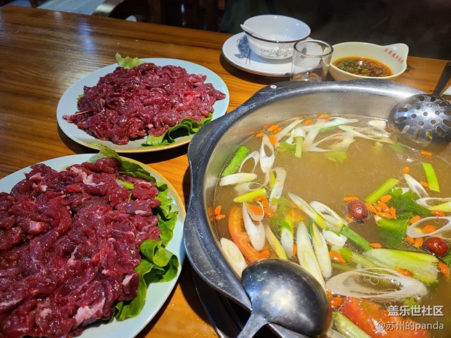 這個按斤來賣的鮮牛肉看起來就很滿足,58一斤的價格也很實惠,入鍋后僅僅10秒就能吃了,微微帶粉的牛肉再配上他們店里特制的蘸料,一瞬間我真的感覺到一整頭牛在草原上奔跑徜徉。