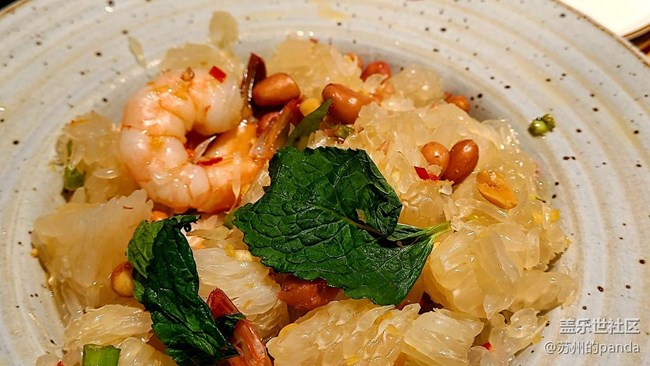 泰式柚子大蝦,清甜的口味和蝦肉Q彈的口感相得益彰,柚子肉也是格外香甜,不得不說泰國人真的太會做菜了!