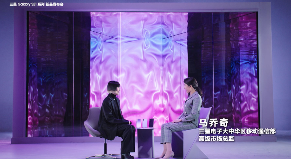 三星電子大中華區(qū)移動(dòng)通信部 高級(jí)市場總監(jiān) 馬喬奇 與先鋒時(shí)裝設(shè)計(jì)師 王逢陳 為大家分享三星Galaxy S21系列產(chǎn)品的設(shè)計(jì)理念。