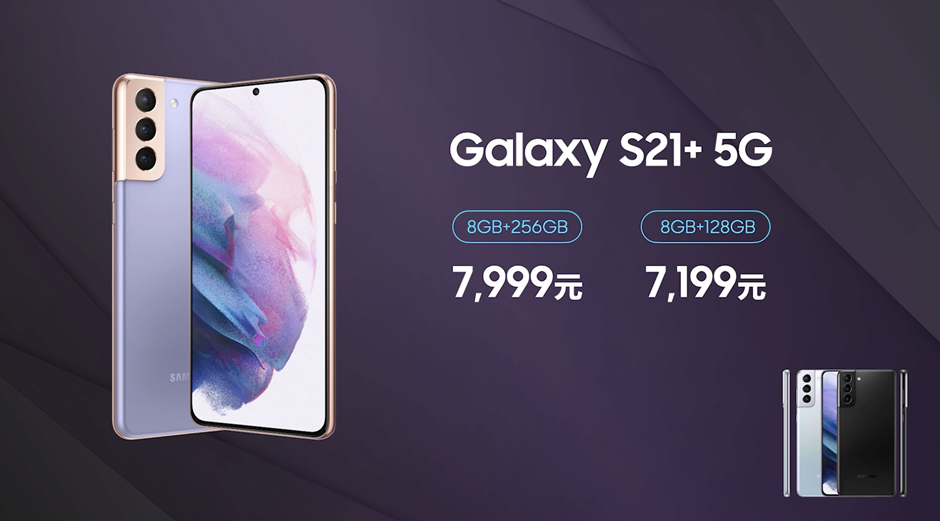 Galaxy S21+ 5G 8GB+256GB售價(jià)7999元,8GB+128GB售價(jià)7199元。
