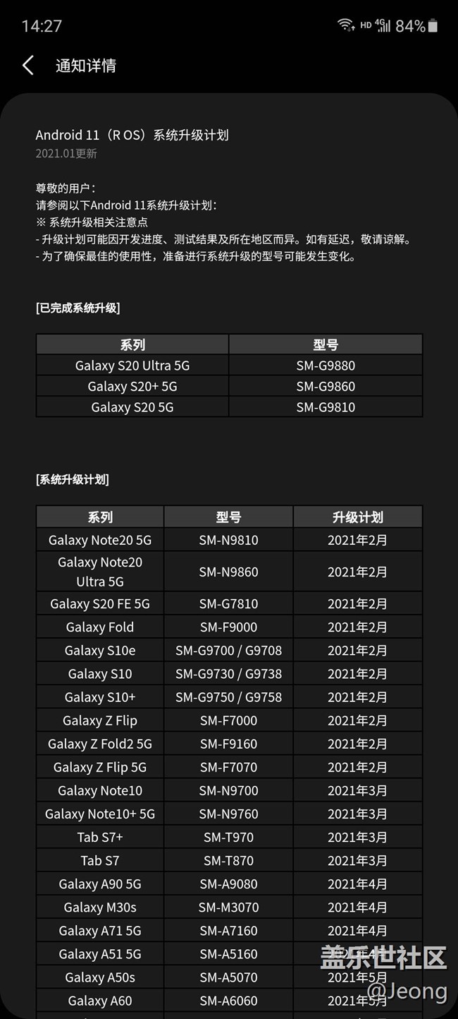 帖子標(biāo)題: One UI 3.0推遲了。。。