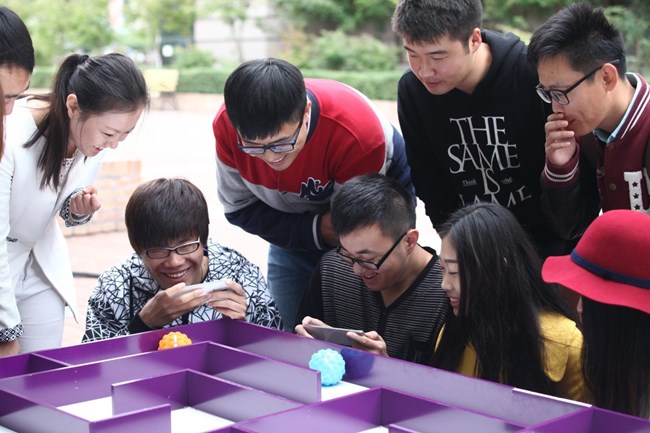 用GalaxyS6edge+操控智能小球走迷宮?你玩過嗎?在IDEACUBE就有!兩位選手分別用手機藍牙連接小球,就可以操控小球在迷宮中"行走"了,是不是很神奇?!