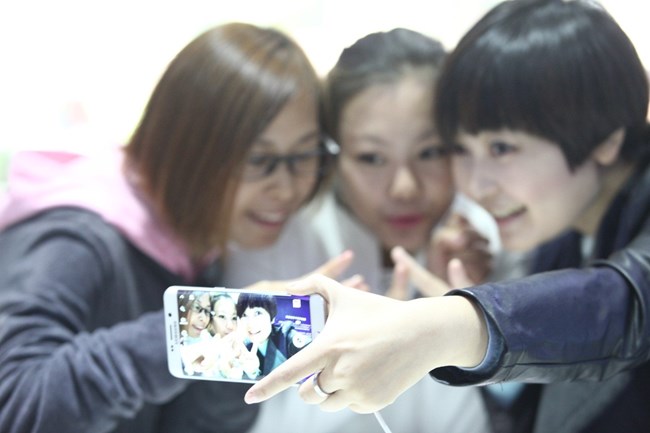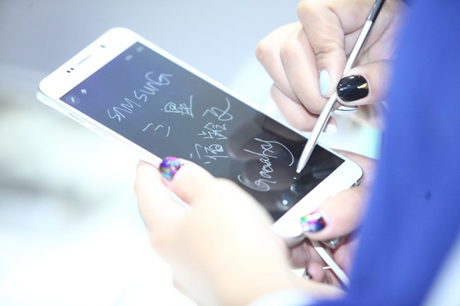 注重體驗的學(xué)子們拿著產(chǎn)品各種操作,一會寫寫畫畫,一會美美的自拍,玩的也是不亦樂乎。