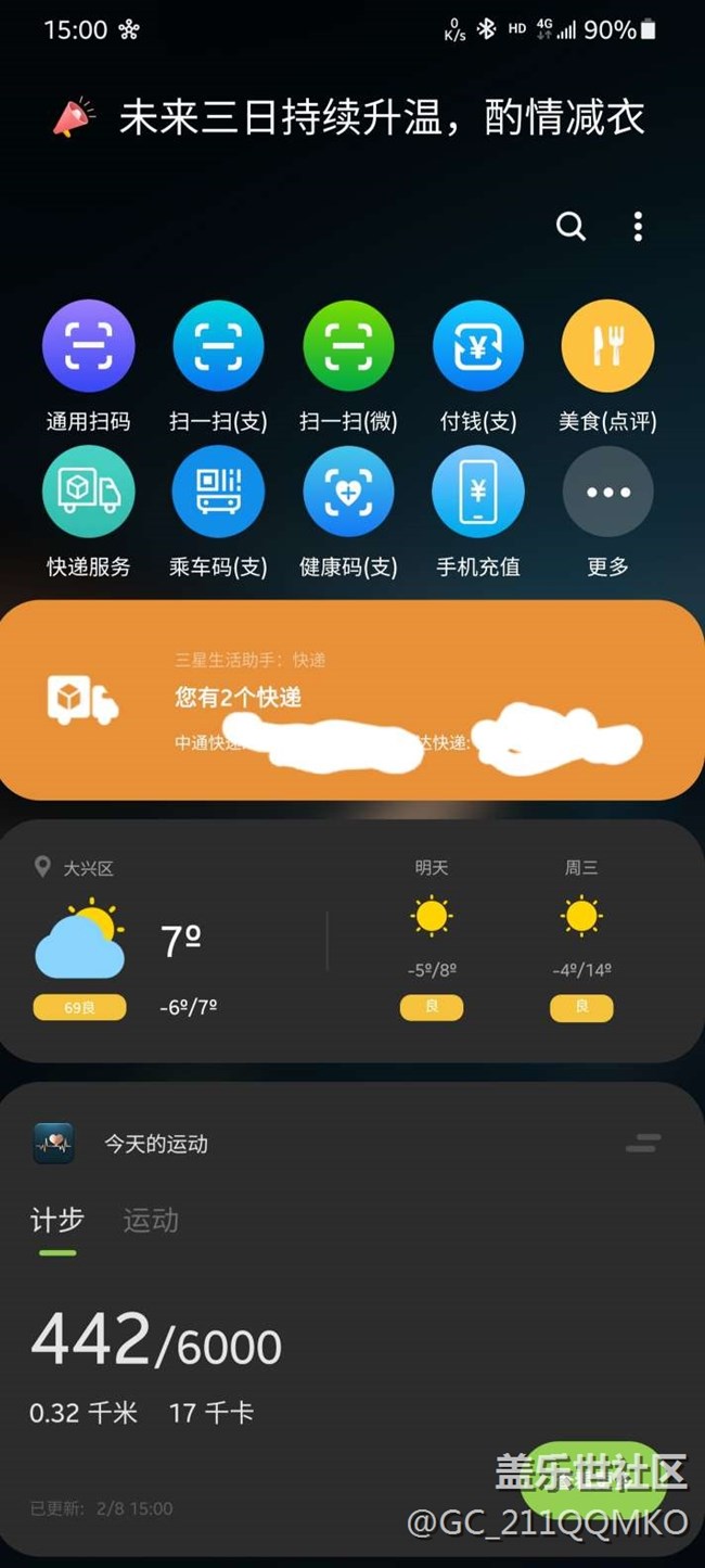 S21U在負(fù)一屏的三星生活助手中的快遞點(diǎn)擊無反應(yīng) 圖片