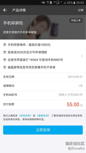 建議大家買個(gè)碎屏險(xiǎn),才55塊,有備無患。 圖片