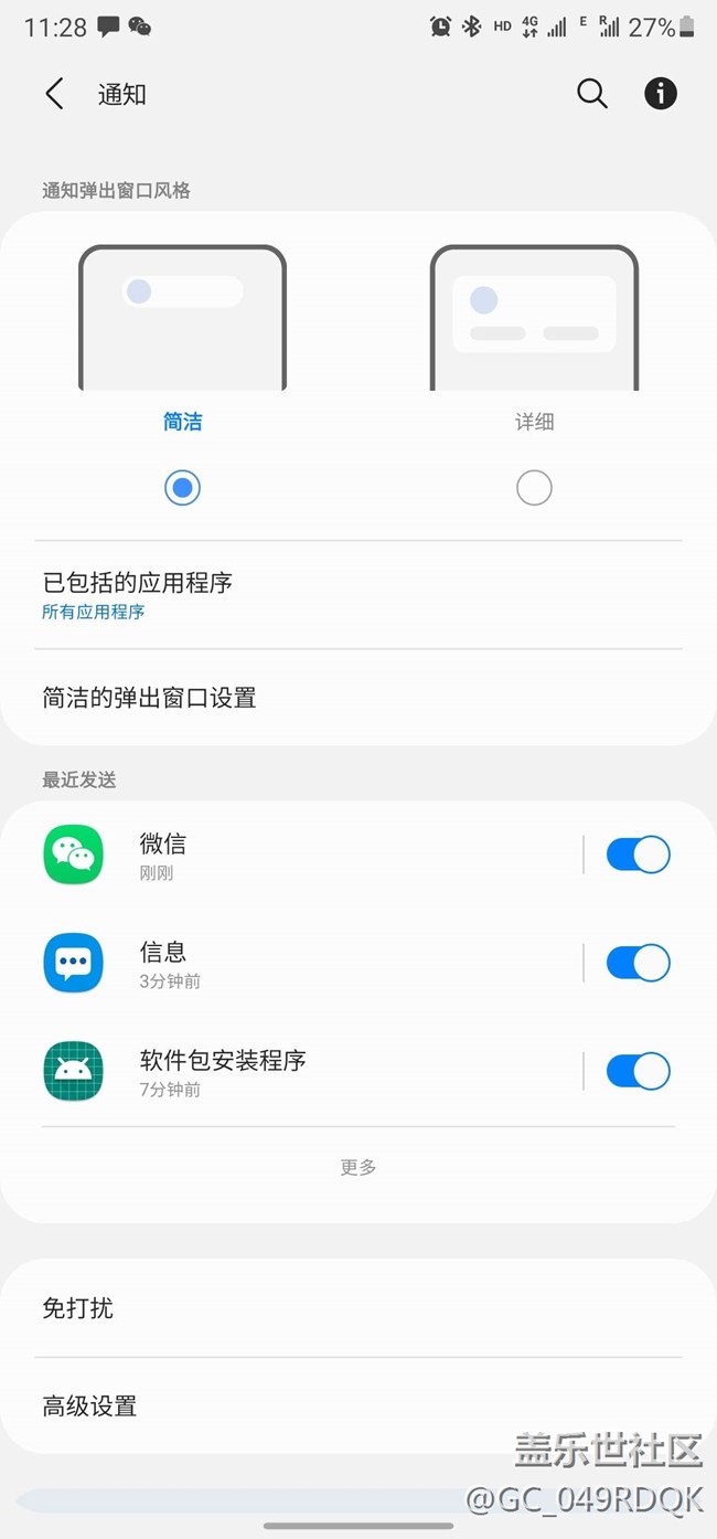 bixby也升級(jí)了最新版 通知也換成了簡(jiǎn)潔模式(本來(lái)小彈窗都沒(méi)有,查了半天換了簡(jiǎn)潔模式才有彈窗提示)