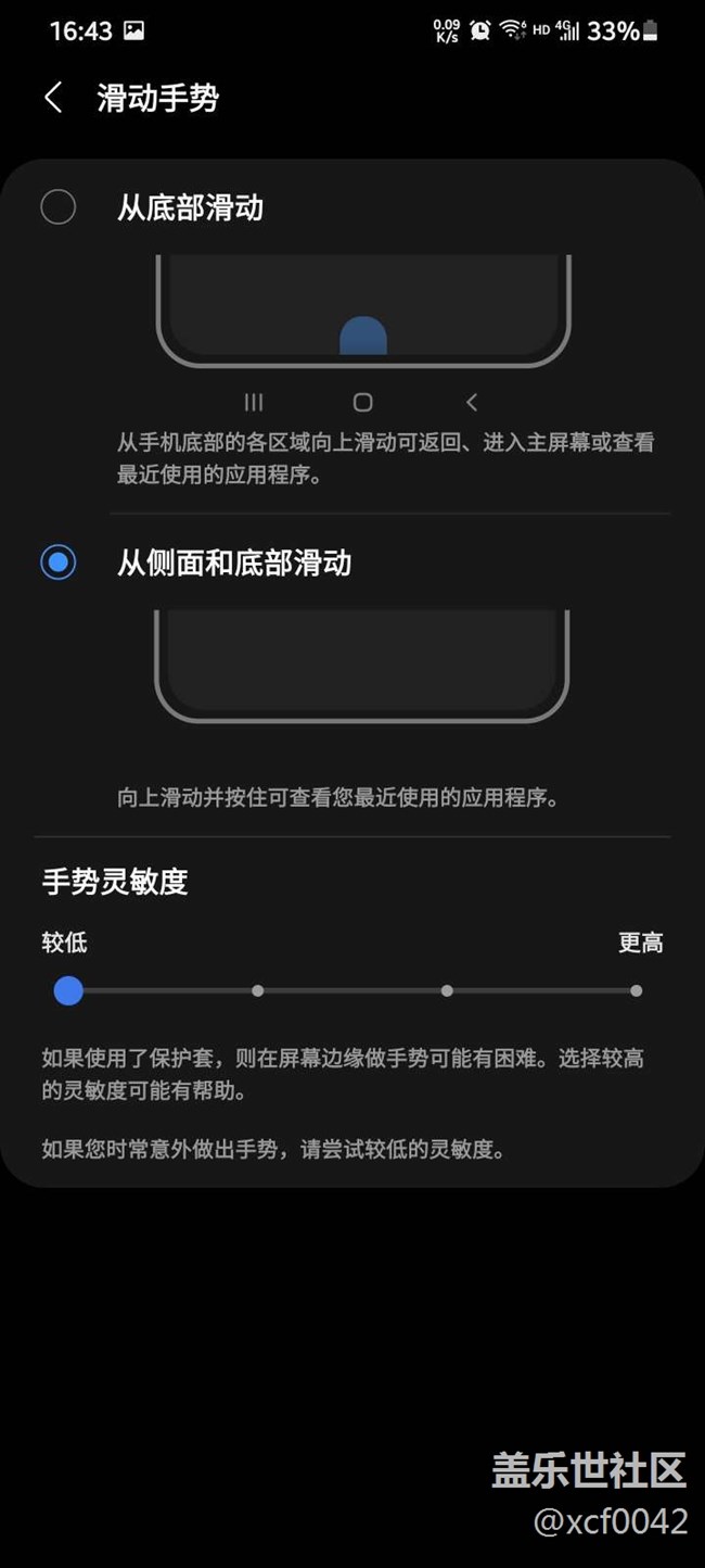 這里插一句,手勢(shì)有兩種,推薦第二個(gè)。第一個(gè)基本和按鈕一樣,御三家,前面用設(shè)置過(guò)側(cè)面手勢(shì)替代,就不需要了。下面一個(gè)上滑進(jìn)入多任務(wù)管理,在底部左右滑動(dòng),進(jìn)入前后的應(yīng)用,非常方便!縱享絲滑
