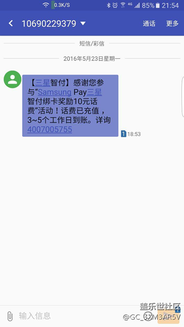 samsung pay今天短信通知返還10元話費,社區(qū)為什么其他網(wǎng)友返還50元,搞不懂!