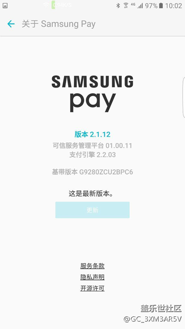 剛剛手機在三星應(yīng)用商店更新了samsung pay到2.1.12