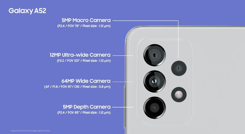 Galaxy A52相機參數(shù)。
