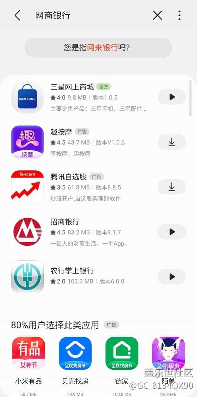 S10+的應(yīng)用商店搜索不到網(wǎng)商銀行 圖片