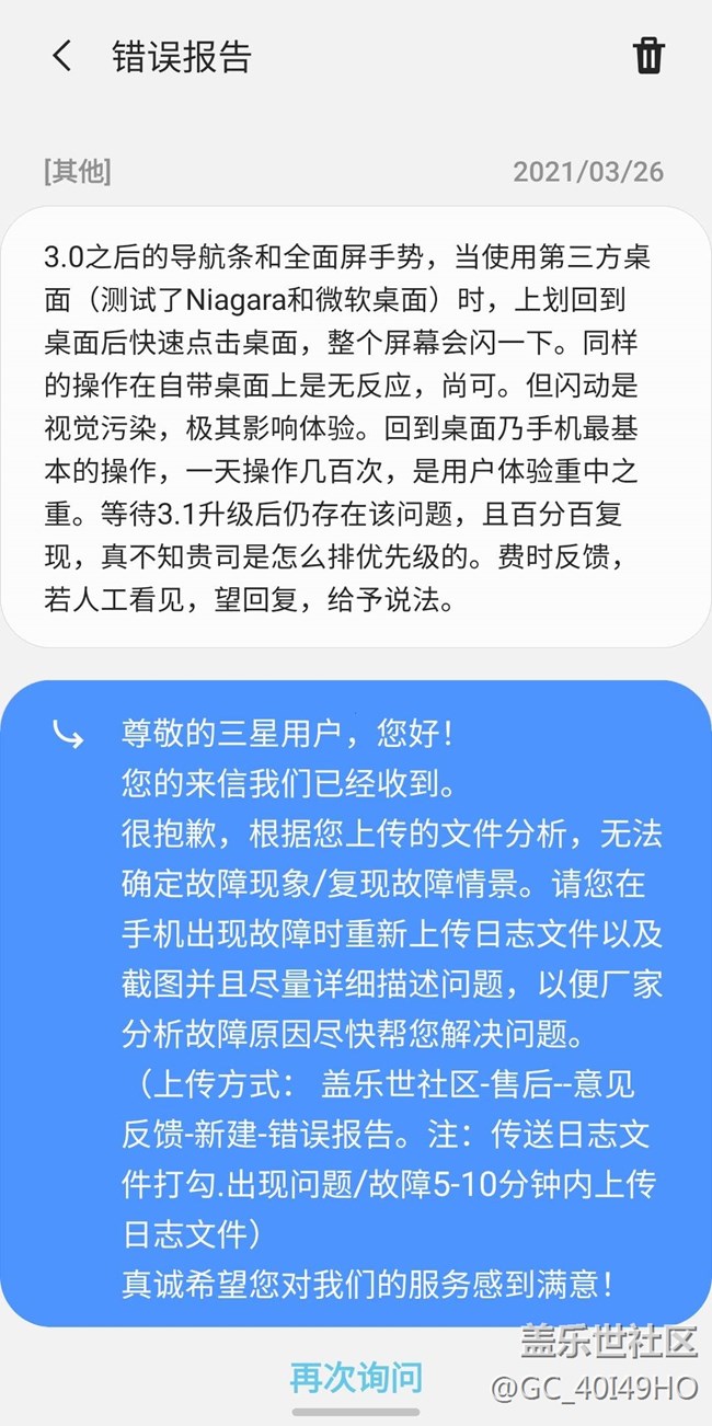 一個(gè)百分百?gòu)?fù)現(xiàn)的問(wèn)題,三星的技術(shù)說(shuō)無(wú)法確定??我一個(gè)普通用戶都在蓋樂(lè)世和酷安里多次碰到別人反饋one ui3.0的這個(gè)bug,官方還不知道這個(gè)問(wèn)題存在么?真麻木。還希望我滿意。。。用最好的態(tài)度干最壞的事怎么跟日本人似的。