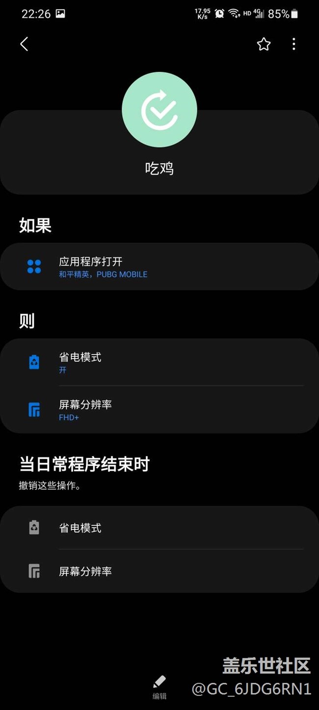 4.然后為了不整天切換分辨率和刷新率。強(qiáng)烈建議使用三星特有的神器。Bixby日常程序,每次進(jìn)游戲都會(huì)幫你自動(dòng)切換成以上設(shè)置太nm方便了。
