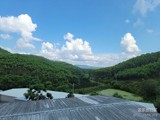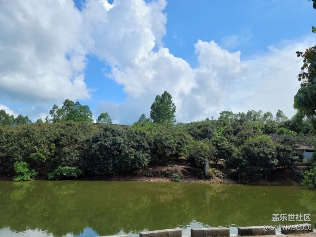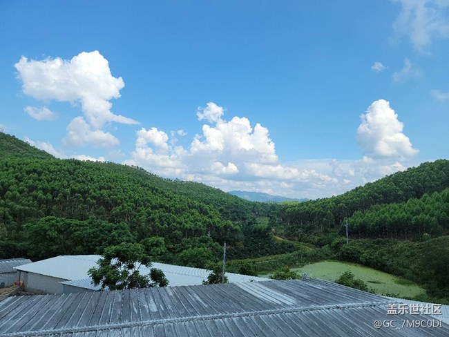 養(yǎng)殖場,花園式的。天空藍藍的,青山綠水啊 圖片
