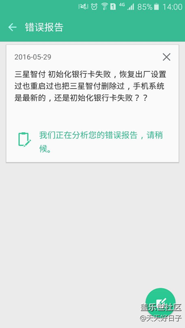 錯(cuò)誤日志已發(fā)出,倒是看看三星什么 分析。