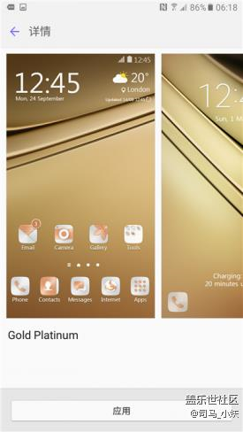 三星Galaxy C7采用基于Android6.0.1深度定制的TouchWiz,關(guān)于這款系統(tǒng)我們已經(jīng)很熟悉了,不過(guò)三星Galaxy C系列根據(jù)不同的機(jī)身顏色定制了專(zhuān)有風(fēng)格的UI,筆者的這臺(tái)楓葉金版C7則內(nèi)置了一套名為Gold Platinum的主題,與金色的機(jī)身相互映襯,看起來(lái)金屬質(zhì)感濃烈。