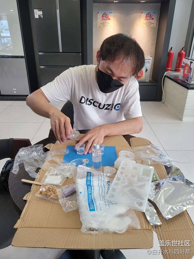 下午兩點(diǎn)大家在三星雙井體驗(yàn)店集合,感謝門店給我們提供了活動場地哦。同時星粉也在桌子上墊了厚紙或塑料防止滴膠及顏料弄到桌子上。為大家點(diǎn)贊哦!