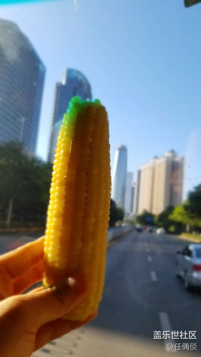 重點是后面虛化背景的那個樓的造型也是玉米??,至于為什么頭上有綠色,那就是為了生活過得去吧